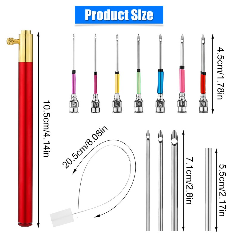 - Package Content: The product contains 1 adjustable red handle, 1 silver handle, 3 needles of different diameters, 7 embroidery needles of different sizes, 1 needle threader, sufficient quantity to meet your various needs.