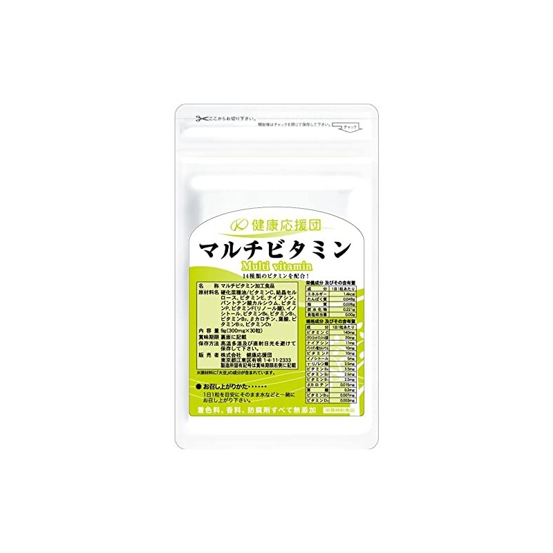 健康応援団 サプリメント マルチビタミン 葉酸プラス 14種類のマルチビタミン お徳用12か月分 12袋 360粒