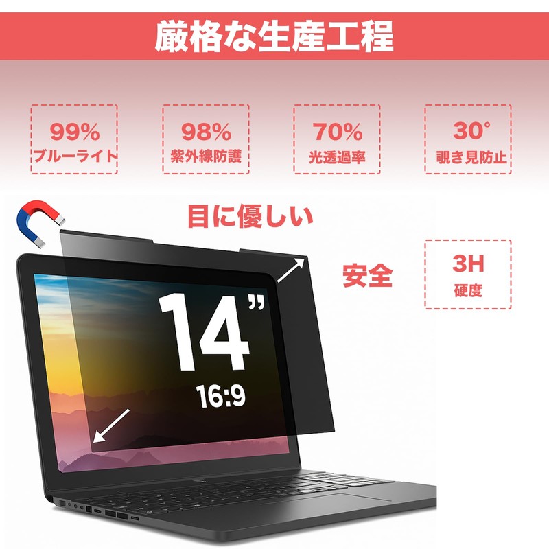 - 14" 16:9 Magnetic Anti Peeking Filter, Privacy Filter, Anti Spy Film, Blue Light Cut, PC, Anti-Glare, Double Sided, Easy to Install and Remove