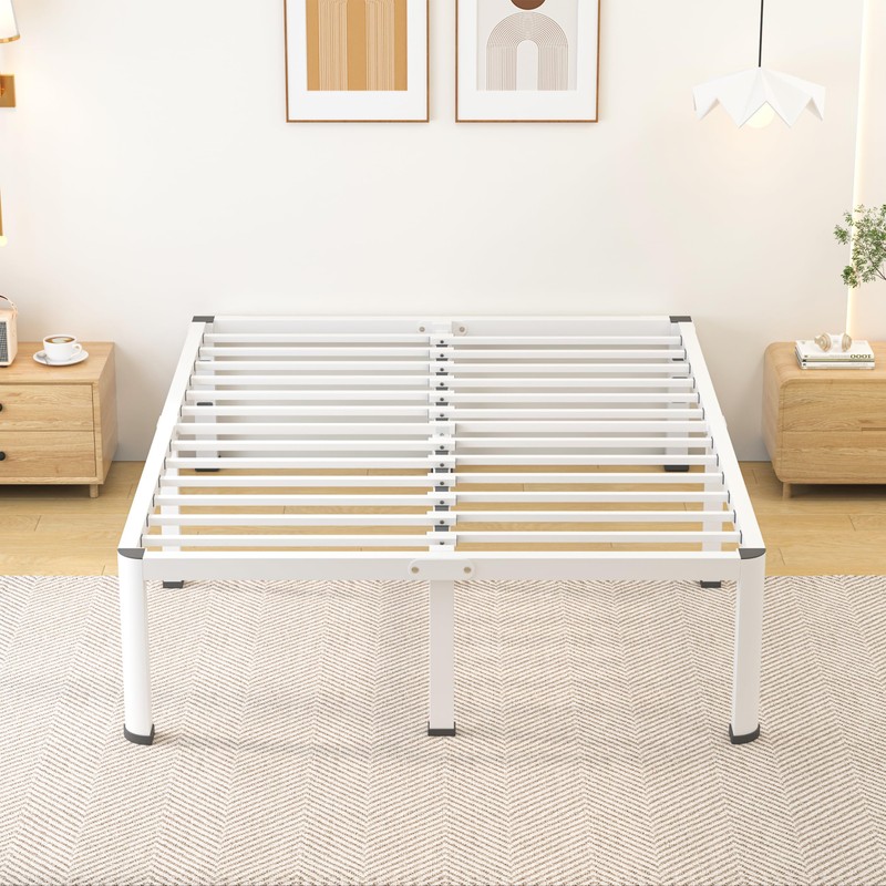 14 Inch Queen Bed Frame, Metal Platform Bed Frame with Round Corner Legs, 3500 lbs Heavy Duty Steel Slats Support, No Box Spring Needed, Noise Free, Easy Assembly, White