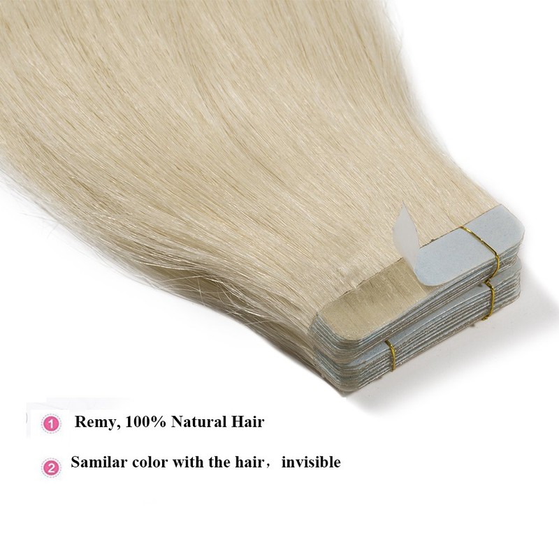 14 inch Tape in Hair Extensions Human Hair 40 Pcs 100% Remy Full Head Skin Weft Seamless Invisible Silky Straight Remi Real Hair Extension (80g,#60 Platinum Blonde)