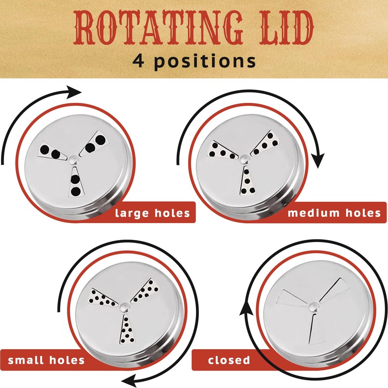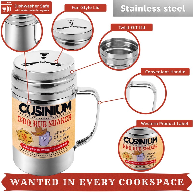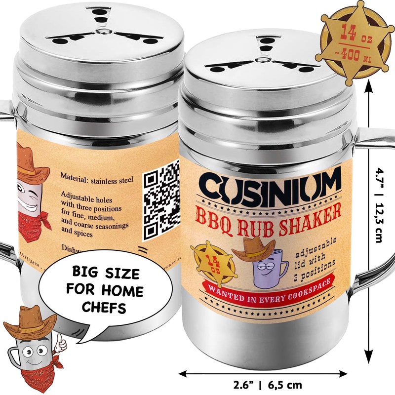 14 oz Seasonings Spice Shaker - BBQ Dry Rub Shaker - Cooking Dredge with Adjustable Fan-Style Lid and Handle