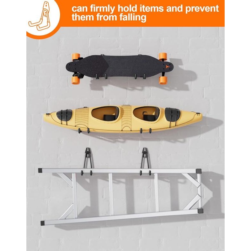 The garage hooks are made of heavy duty steel metal material, have strong load bearing capacity. Solid steel body adopts anti-rust coating and non-slip PVC sheath which gives better grab on hanging items and prevent them from falling or being scratched. The tubular double hooks design makes the garage utility hooks more stable than regular single hooks.