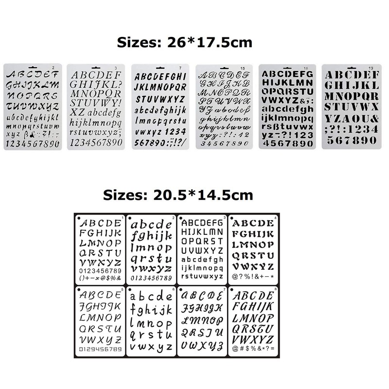 - Package Included: come with 14 pack letter number stencils, 2 different sizes are included: 17.5 x 26cm, 14.5 x 20.5cm, different fonts which are designed for you to create different styles. easy to carry out and storage.