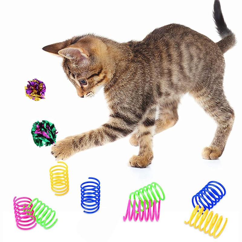 - 【Abundant Quantity Cat Toys Interactive】--- There are 2 kinds of cat toys in the package, including shiny crinkle balls cat toys, and cat spring toys, a total of 14 pieces, can meet your cat's needs and replacement.