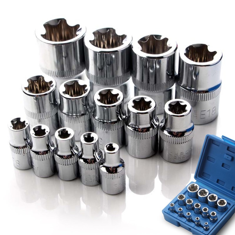14-piece Torx nut set, socket wrench set CR-V steel for 1/2, 1/4, 3/8 inch star socket set E4-E24 sockets nut hexagon socket set with storage box