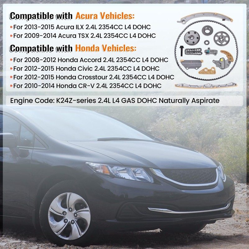 • Compatible with Acura Vehicles: for 2013-2015 Acur-a ILX 2.4L 2354CC L4 DOHC; for 2009-2014 Acur-a TSX 2.4L 2354CC L4 DOHC