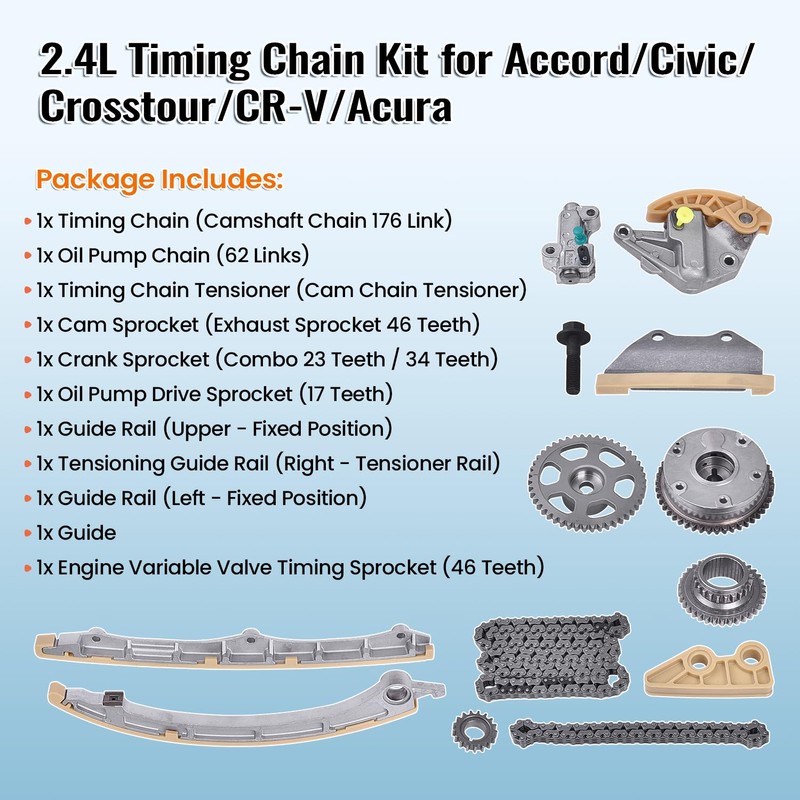 14510-R40-A01 Timing Chain Kit with Camshaft Adjuster Compatible with Acura ILX TSX 2.4L; Compatible with Honda Accord Civic Crosstour CR-V 2008-2015 2.4L Part Numbers: 14530-RZA-A01, 14540-RAA-A02