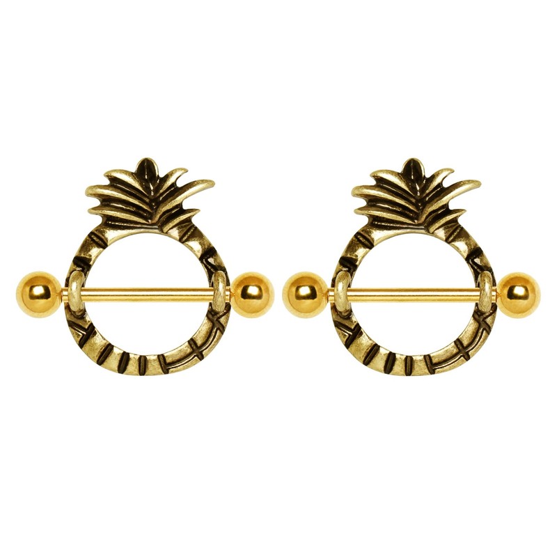 14GA Gold Plated Pineapple Nipple Shields, Sold as a Pair
