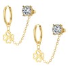 14K Gold Chain Earrings for Women - Double Piercing Dangle Chain for Women, Detachable Huggie Hoop Earrings with Cubic Zirconia Studs & openwork lucky four-leaf clover Dangle Design, 316L Surgical Steel Hypoallergenic