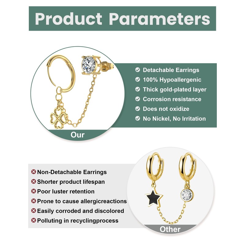 - Hypoallergenic & Convertible Design:Made with nickel-free surgical steel, these earrings are gentle on sensitive ears and comfortable for all-day wear. The 5A zirconia stones shine brilliantly, and the detachable chain allows you to switch between a classic stud or elegant dangle design, making them versatile for any style.