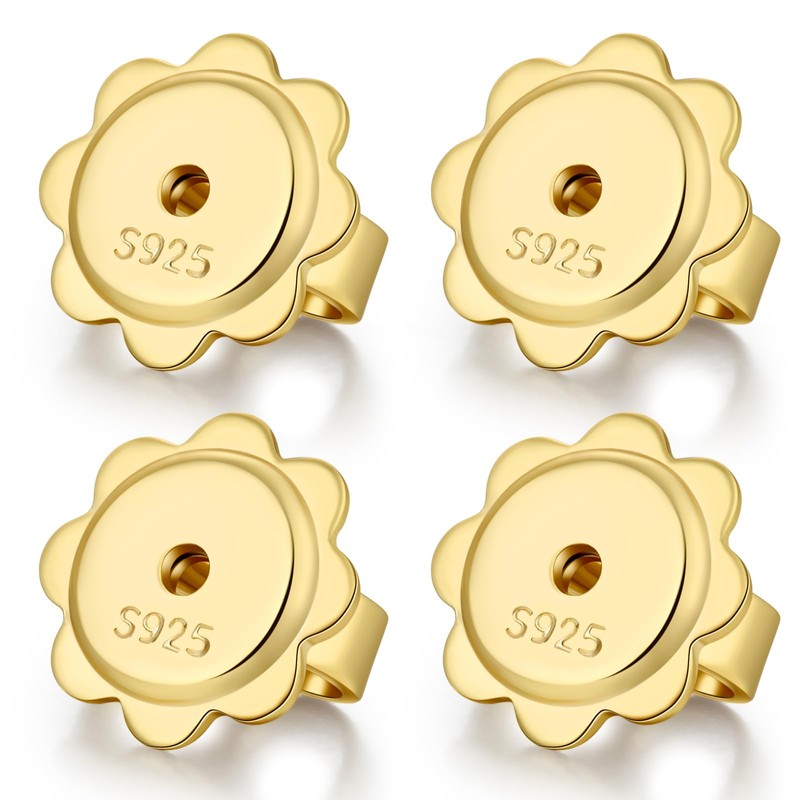 - ❤. HYPOALLERGENIC: 925 sterling silver earring backs, high quality 18K gold plated hypoallergenic secure earring backs perfect for various fine earrings. earrings back earrings finding for most sensitive ears.