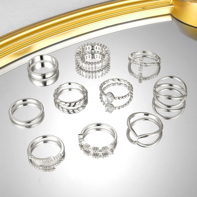 14K Gold Plated Rings Set for Women, Dainty Gold Knuckle Rings Non Tarnish, Simple Thumb Stacking Rings Pack Size 5/6/7/8/9/10 (10, Silver)