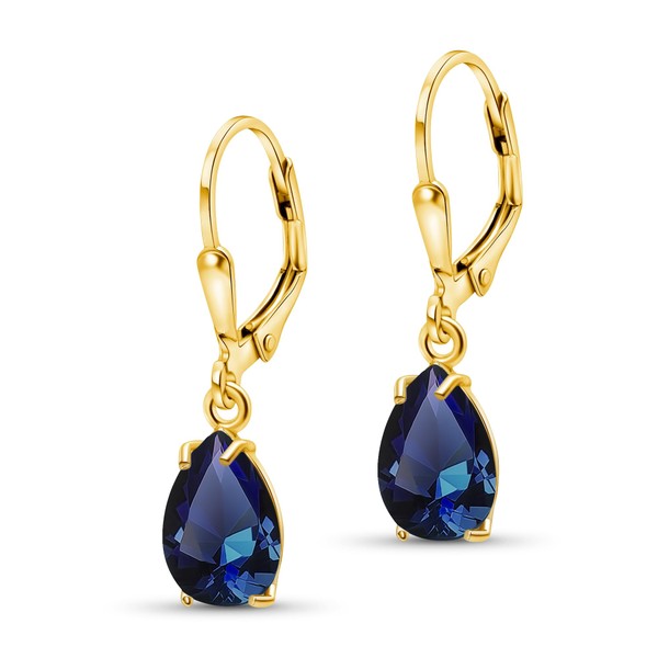 14K Gold Plated Sapphire Teardrop Earrings for Women – September Birthstone Jewelry – Dainty Leverback Earrings in Gold Over 925 Sterling Silver – Elegant Gift for Women