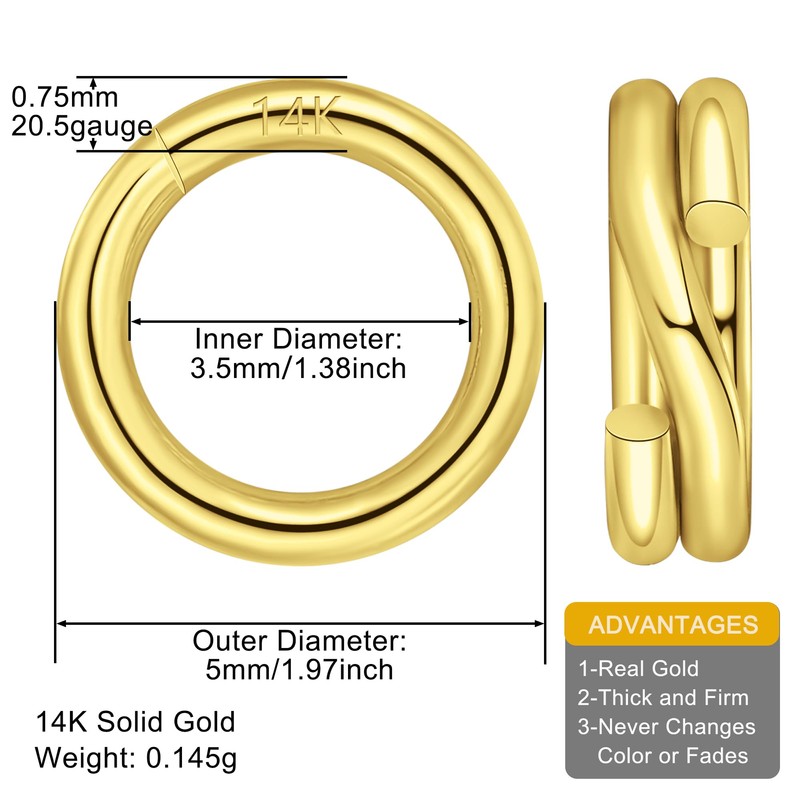 - 【Precious materail】14K real gold, the gold Split Ring stamp14K. Good for everybody, best choice for those who have sensitive skin.