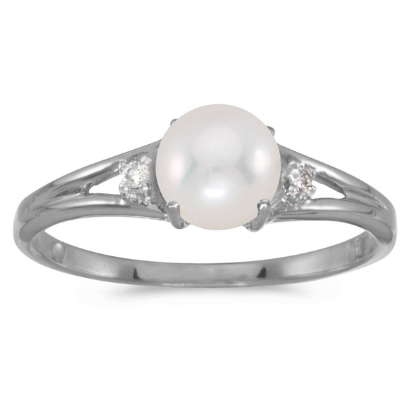 This 14k white gold pearl and diamond ring features a 4.5 mm freshwater cultured pearl. (Size 6)