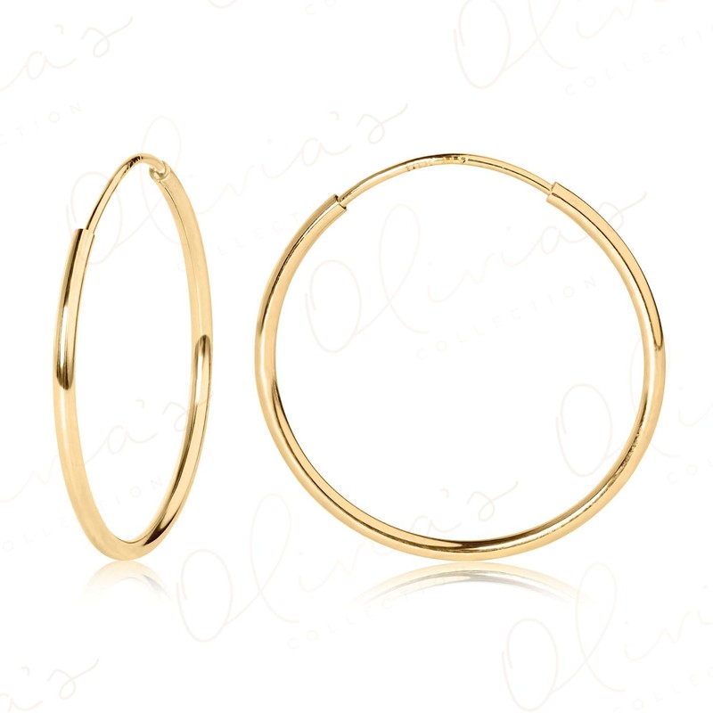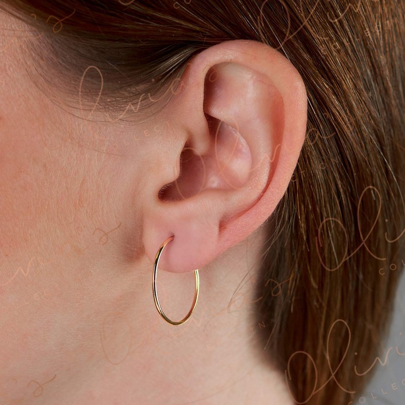 - Style. One of our most popular styles of endless hoop earrings is made for you. They're lightweight solid gold with a hollow interior. You can wear them as a snug fit or loose during any activities. Comfortable when sleeping or taking a shower.