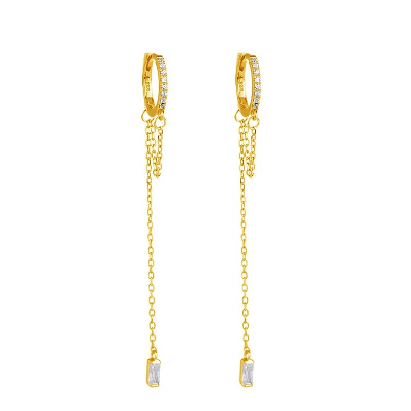 - Genuine 925 Sterling Silver, Hypoallergenic for sensitive ears, 14K Yellow Gold Plated, High Quality Polished, Dainty Small Hoop CZ Chain Dangle Drop Earrings. Beautiful gifts for her, women, daughter, or treat yourself.