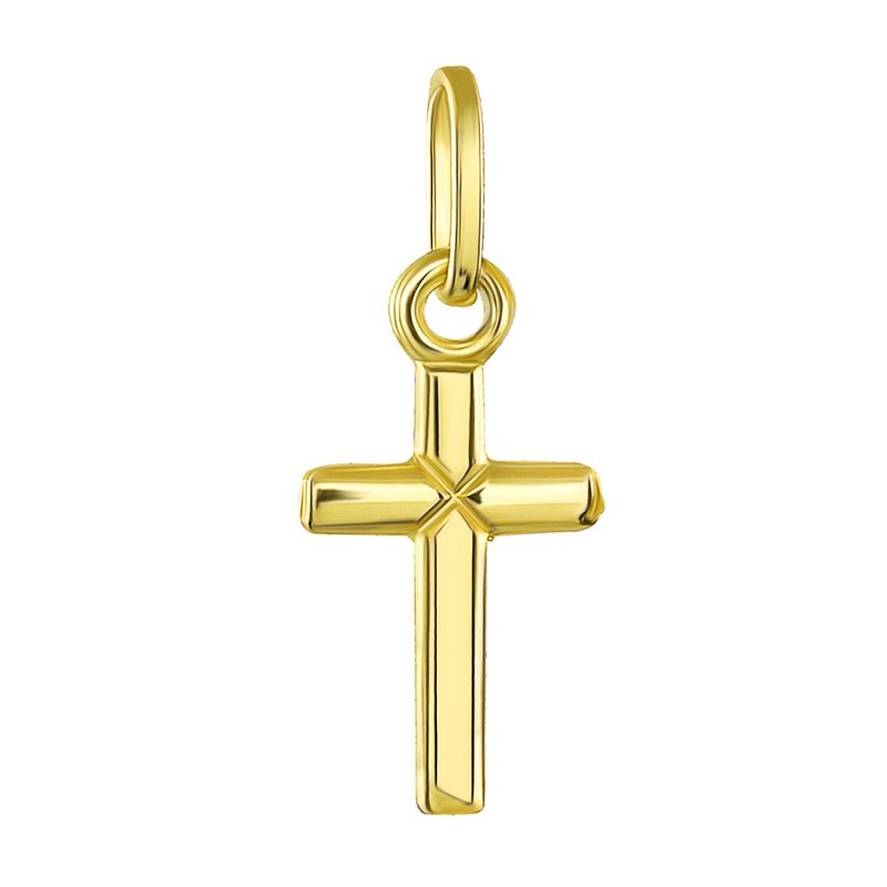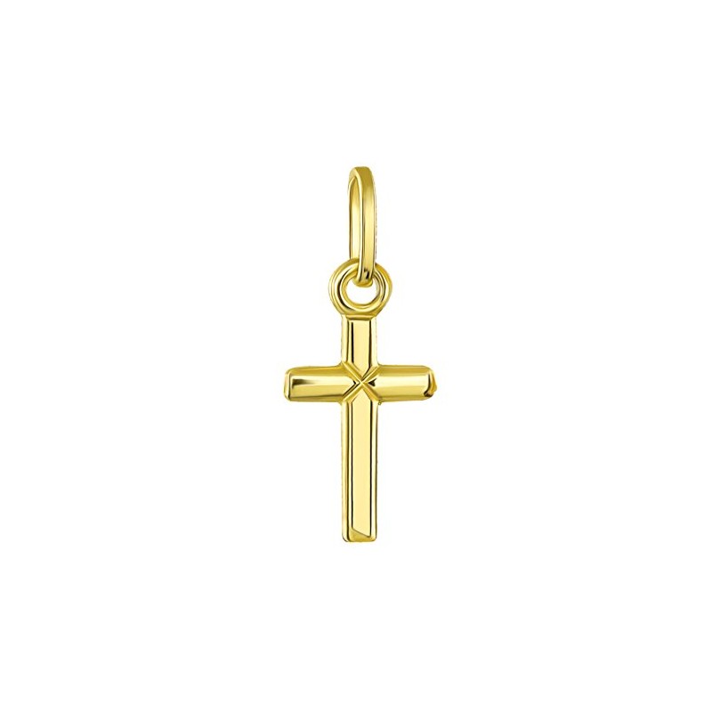 14K Yellow Gold Simple Classic Tiny Cross Charm Pendant