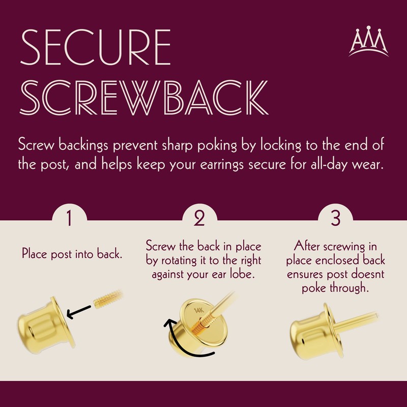 - 14K SOLID YELLOW GOLD: The earrings and secure screw backs are both stamped 14K to guarantees the quality and authenticity.