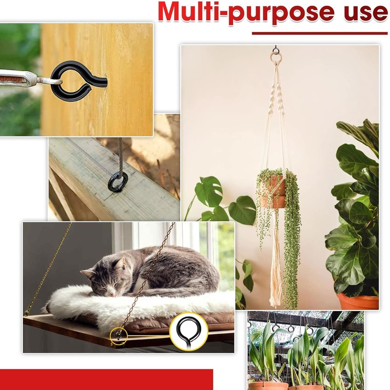 - ✔️ EXCELLENT MATERIAL QUALITY: Eye hooks screw are made of heavy-duty steel material with a black coating on the surface, which is not easy to break, rust, durable, and corrosion-resistant daily use. It is very suitable for hanging in light or light applications. The multi-purpose eye screw can hang items outdoors, in homes, offices, and workplaces.