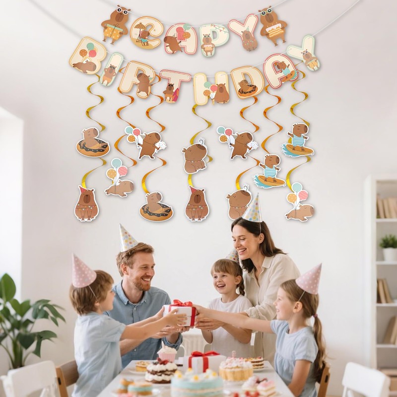 - 【Capybara Birthday Decorations Set】Create an unforgettable capybara-themed celebration with our high-quality set! The package includes 2 pre-assembled banners, 12 hanging swirls, all featuring vibrant colors and charming capybara designs. Perfect for bringing joy and a cohesive festive look to your party.