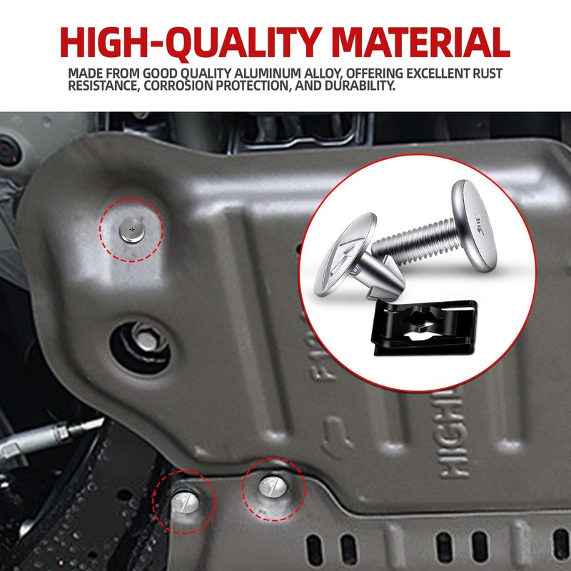 - Durable Construction: These engine lower cover pin screws are made from high-quality aluminum alloy, offering excellent rust resistance, corrosion protection, and durability. Designed to withstand harsh automotive conditions, they ensure a long-lasting secure fit for your car