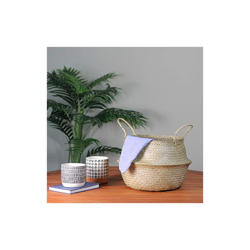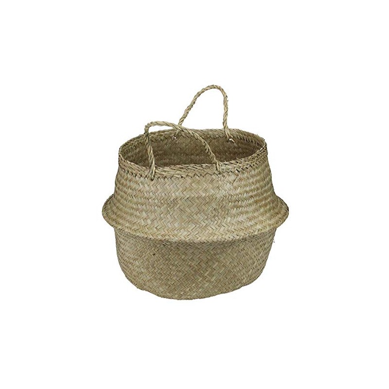 15" Brown Seagrass Wide Belly Wicker Basket with Handles