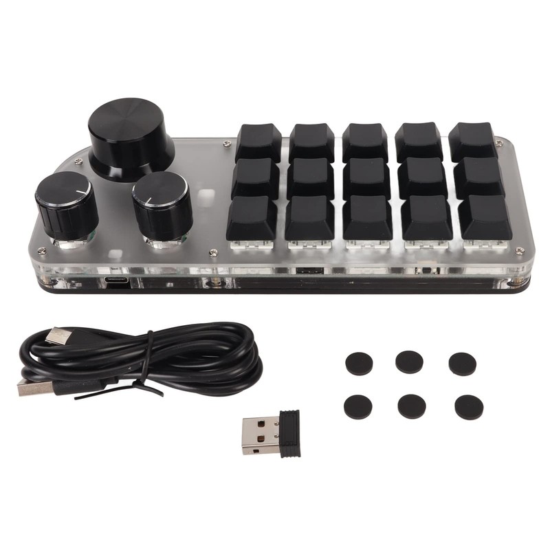 - [15-Key & 3-Dial Customizable Keypad]: Our Macro Programmable Keyboard features a compact 15-key keypad along with three rotating dials. These buttons can be programmed to perform specific functions, shortcuts, or macros, allowing you to personalize your keyboard experience and your workflow.