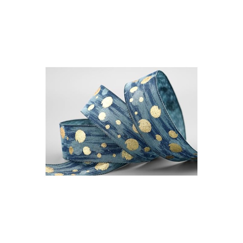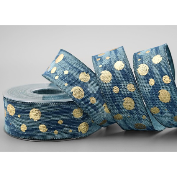 15 m x 40 mm Decorative Ribbon Galaxy Blue Gold Fabric Ribbon with Wired Edge...