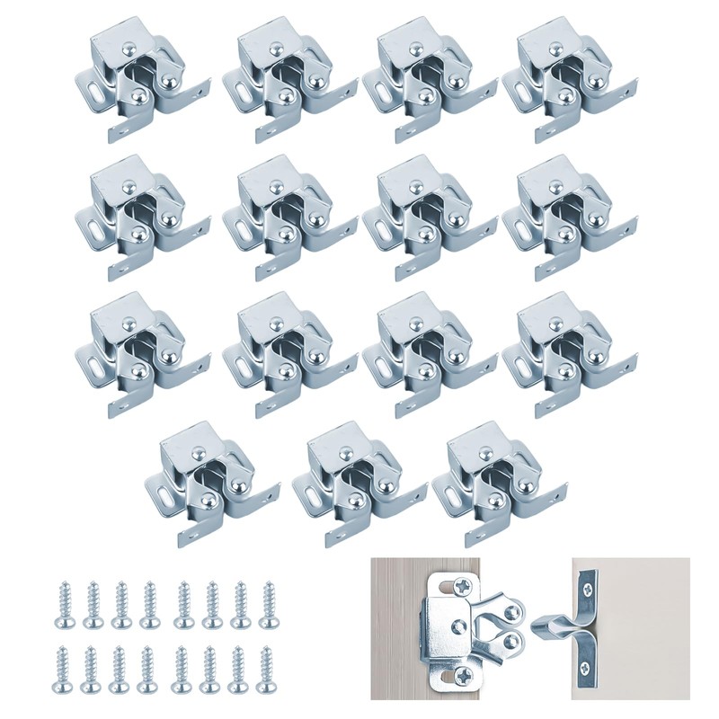15 pcs Double Roller Catches for Cupboards, Cupboard Door Catches and Latches with Screws, Door Catches for Internal Doors Metal Cabinet Catches and Latches for Bookcase, Cabinet, Cupboard, Wardrobe