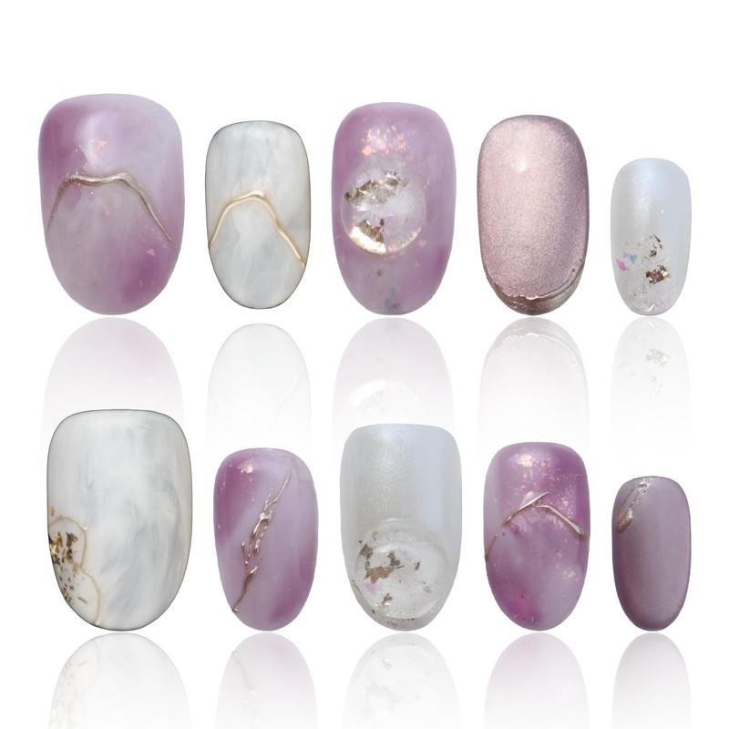 • Lavender Press On Nails: 3D press on nails, press on acrylic nails, short almond press on nails, gifts for women