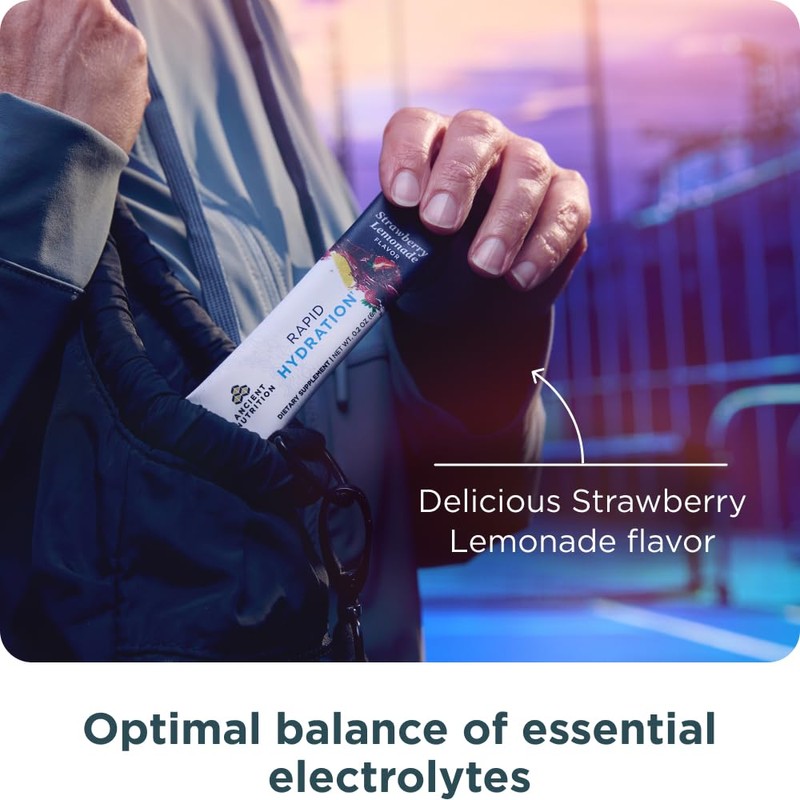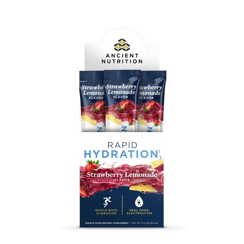 Ancient Nutrition Rapid Hydration Powder, Strawberry Lemonade, Electrolytes from Natural Sea Salts and Red Marine Algae, Supports Rapid Body Hydration and Cellular Health, 15 Servings