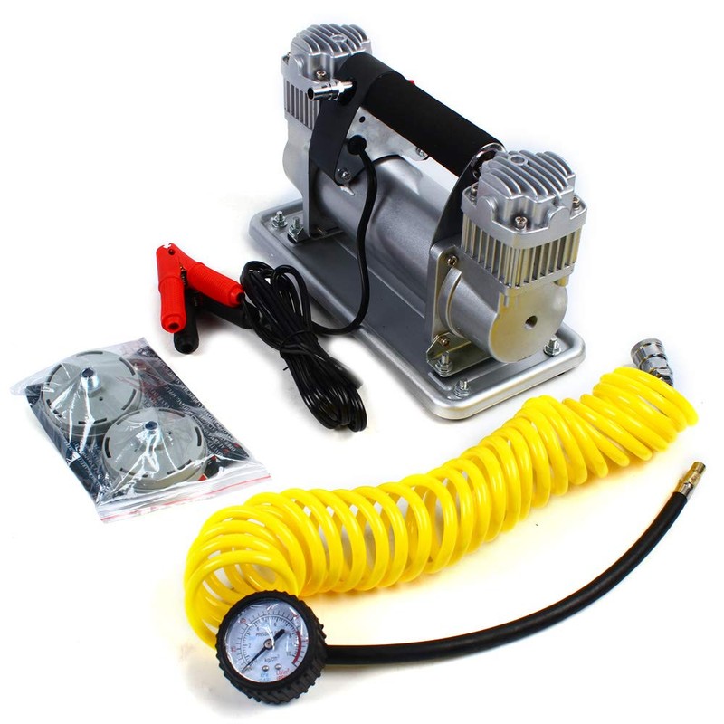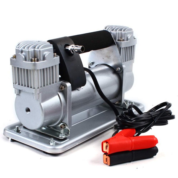 - ★This pump uses a high-quality direct drive motor to drive the sturdy metal double cylinder, so it is a low rotating speed and high efficiency pump, Powerful power can meet most car tires.