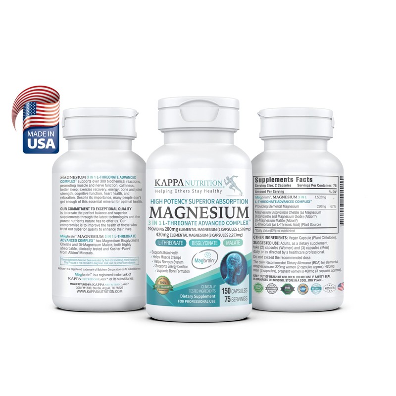 - Made in the USA and Tested for Purity and Safety: Our High-Potency, Superior-Absorption Magnesium 3-in-1 L-Threonate Advanced Complex capsules are proudly manufactured in the USA. Each vegan-friendly capsule contains 420 mg of pure elemental magnesium, designed to support healthy magnesium levels effectively.