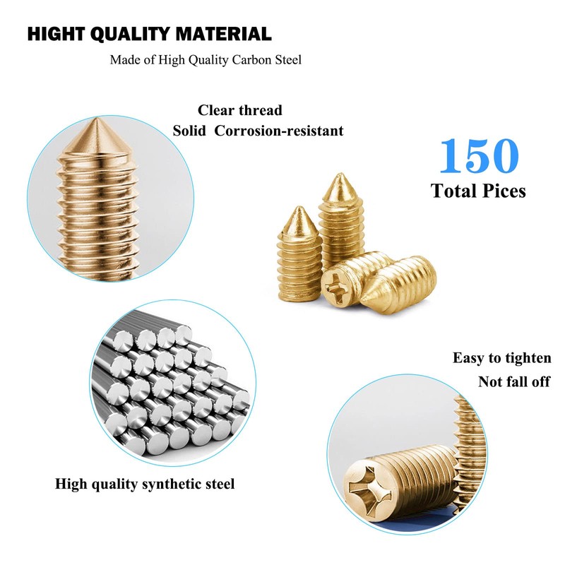 - 【150 Pcs in 6 Sizes】There are 6 sizes in leather repair kit, including M2*3, M2.5*4, M2.5*5, M2.5*6, M3*5, M3*8, (25 pcs for each size). Tip screws suitable for most belts, Rich sizes to meet the needs of different uses.