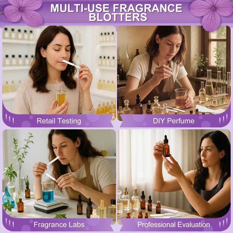 These versatile strips are compatible with perfumes, essential oils, body mists, aroma sprays, and custom blends, making them suitable for a wide range of uses. Whether you're working from home, in a fragrance studio, beauty salon, or classroom, they deliver clean and consistent performance.
