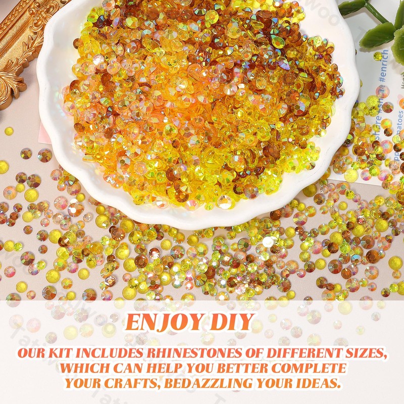- Package Content: This yellow bedazzling kit contains 15,000 pcs yellow flatback jelly rhinestones, available in 3 common sizes: 3mm, 4mm and 5mm, which can meet diverse creative needs such as manicures, accessories and handicrafts