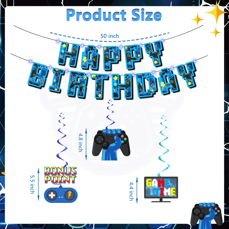 • Easy to Use: You just open gaming party birthday decorations in the package and hang them anywhere you want the whole scene doesn’t take long to set up either, an hour before the gaming decorations for birthday party starts is not too late. have more time to enjoy the video game birthday decorations. you can prepare for the party ahead, just enjoy the happy family craft time with no hassle! create a stunning visual atmosphere effortlessly