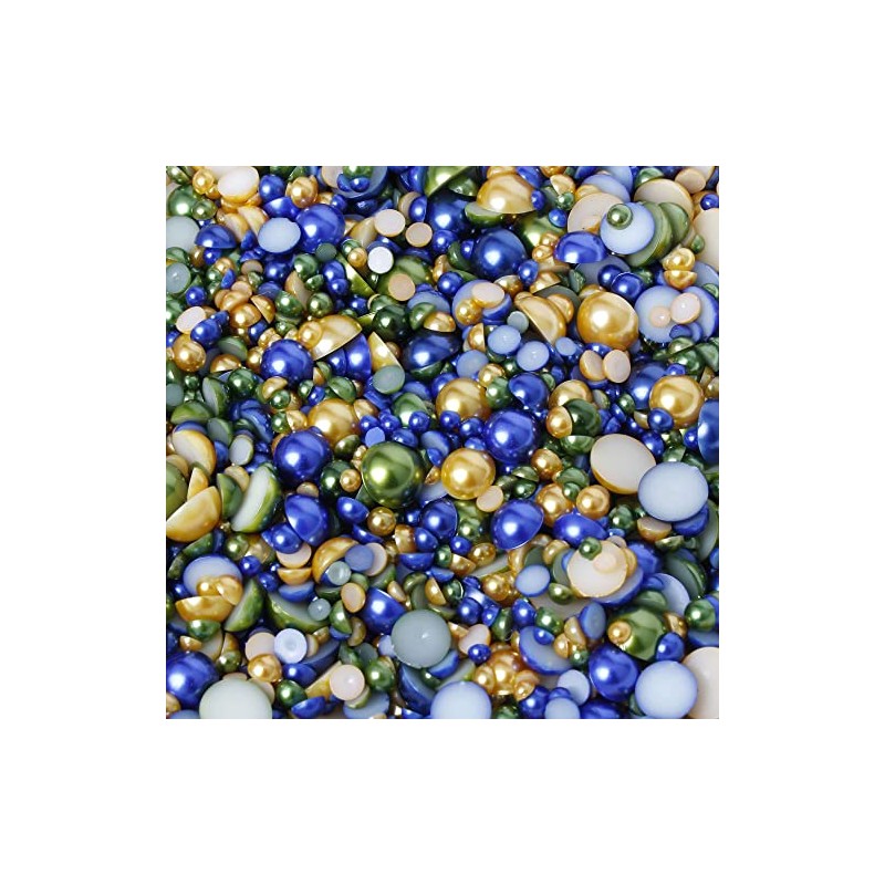 15g Mixed Colours Size Flat Back Pearls Cabochons Decoden 2mm - 12mm Bling (Languedoc)