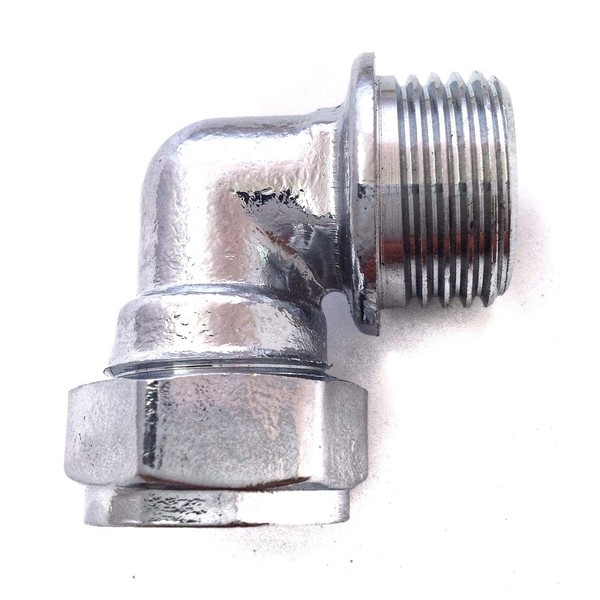 - Using a 1/2 inch BSP (please see sizing note) male thread this will join a 15mm chrome plated plumbing pipes in a 90 degree elbow arrangement