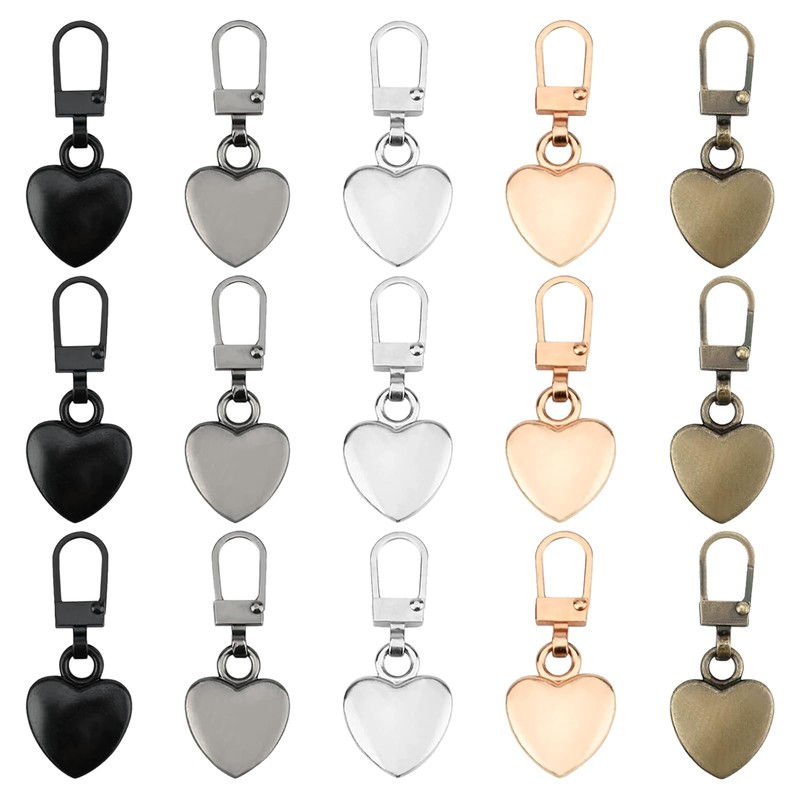 15Pcs Heart Shaped Zipper Pull Replacement, Detachable Zip Pulls Metal Zipper...