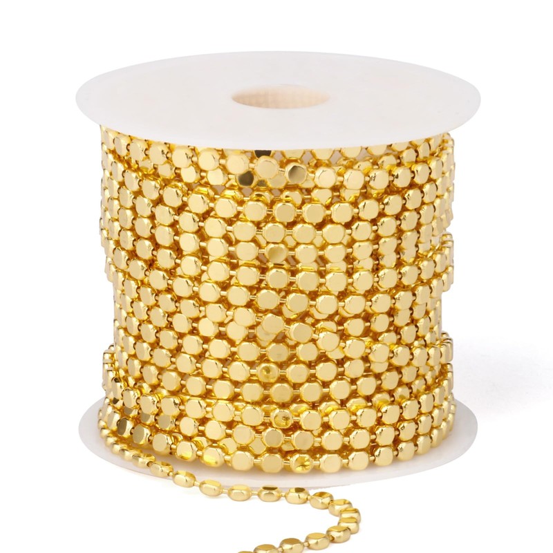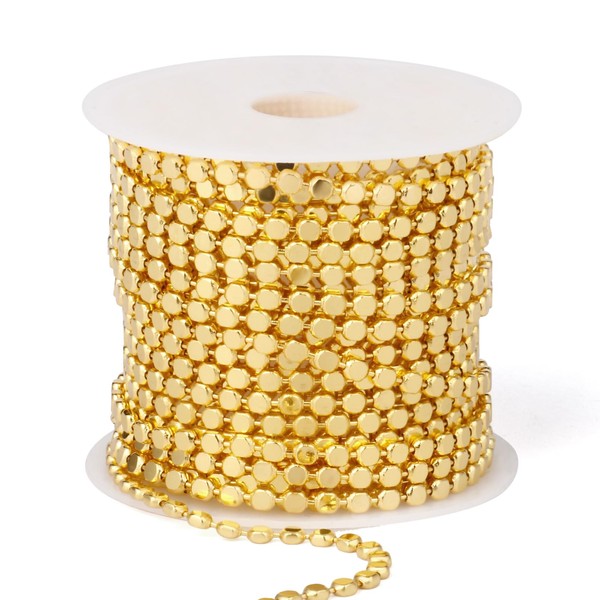 16.5FT Gold Dot Chains Roll, 2MM 18K Gold Plated Brass Flat Ball Bead Chains Spool Bulk for Jewelry Making