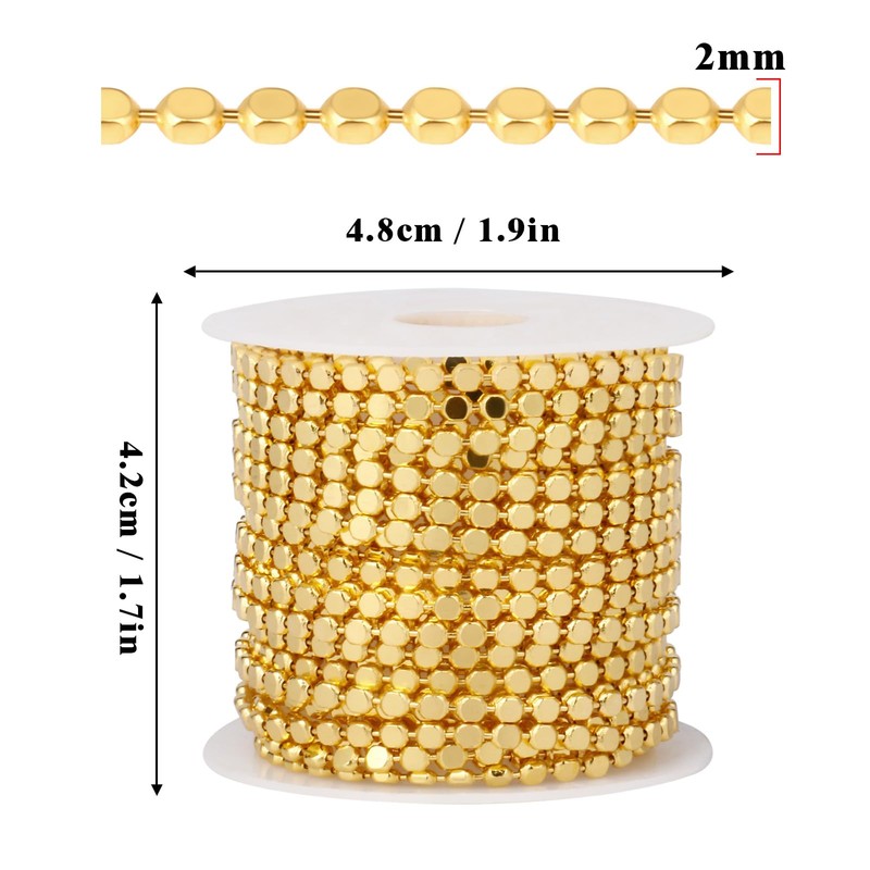 Cadikez 16.5FT Gold Dot Chains Roll, 2MM 18K Gold Plated Brass Flat Ball Bead Chains Spool Bulk for Jewelry Making