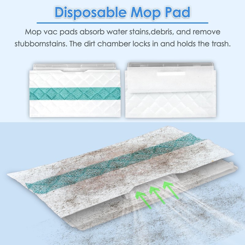 • 【Super Strong Absorbency】 Adopting ABSORB+LOCK technology, it has extremely strong water absorption and capture ability, which can lock more dirt, dust and oil to ensure the floor is thoroughly clean. Stubborn stains can be effectively absorbed and cleaned including dirt, oil stains, water stains, juice residues and other sticky debris. Juts choose our Vacmop mop pads to give your floors a thorough clean and leave them sparkling.