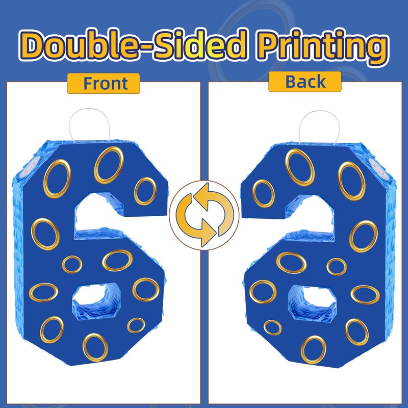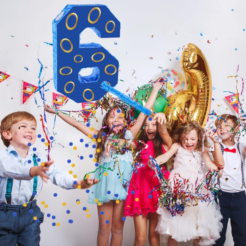 - Perfect Birthday Decorations: Decorate your girls or boys' birthday party with this blue gold ring number 6 pinata. It is a fun and unique way to interact with guests at a party. Kids will be delighted to see this visually appealing pinata at their birthday party