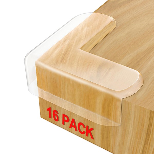 コーナークッション コーナー ガード透明 16個セット 赤ちゃん 子供 ケガ防止 保育園 安全対策 家具の角を保護 (L型, 透明)