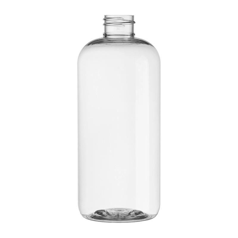 16 oz Clear PET Plastic Boston Round Bottle with 28-410 neck finish. The boston round bottle is distinctive in its classic shape. Characteristic of the boston round are its rounded shoulders and rounded base.