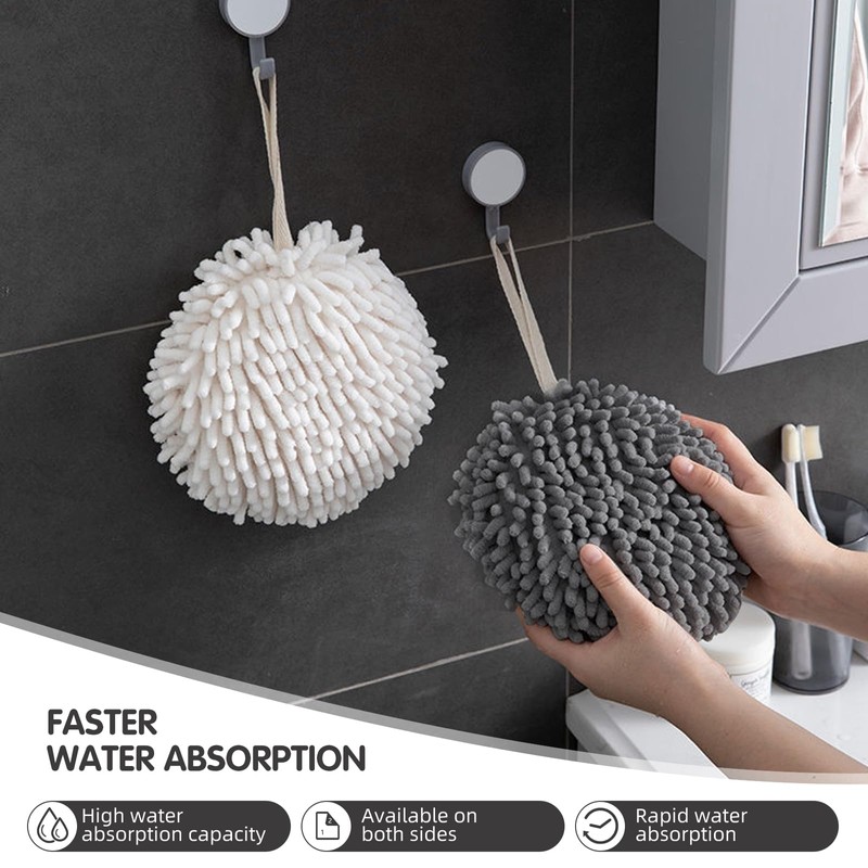 - Bathroom hand towels with a suede sponge core absorb up to 500ml of water. Perfect for kitchens or bathrooms, these chenille hand towel balls are wall-mounted for easy access