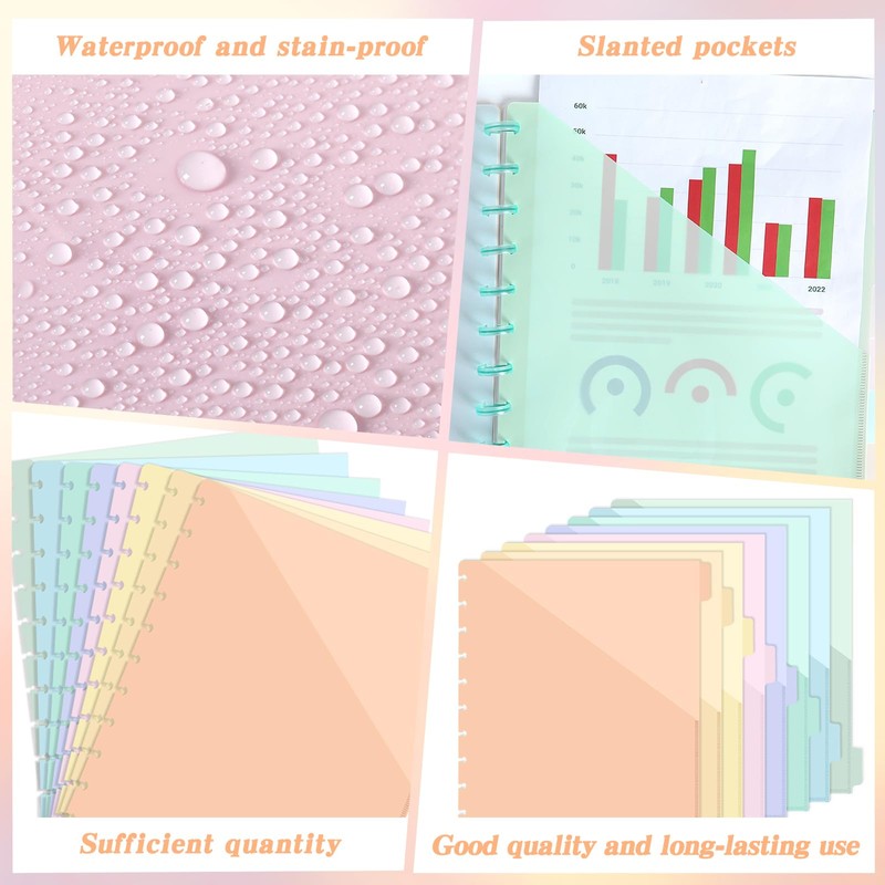 16 Pcs Discbound Pocket Dividers 8.5 x 11 Dividers with Tabs and Pockets Discbound Pocket Folders Letter Size Binder Divider Plastic Disc Planner Supplies for Business School Office(Pastel)